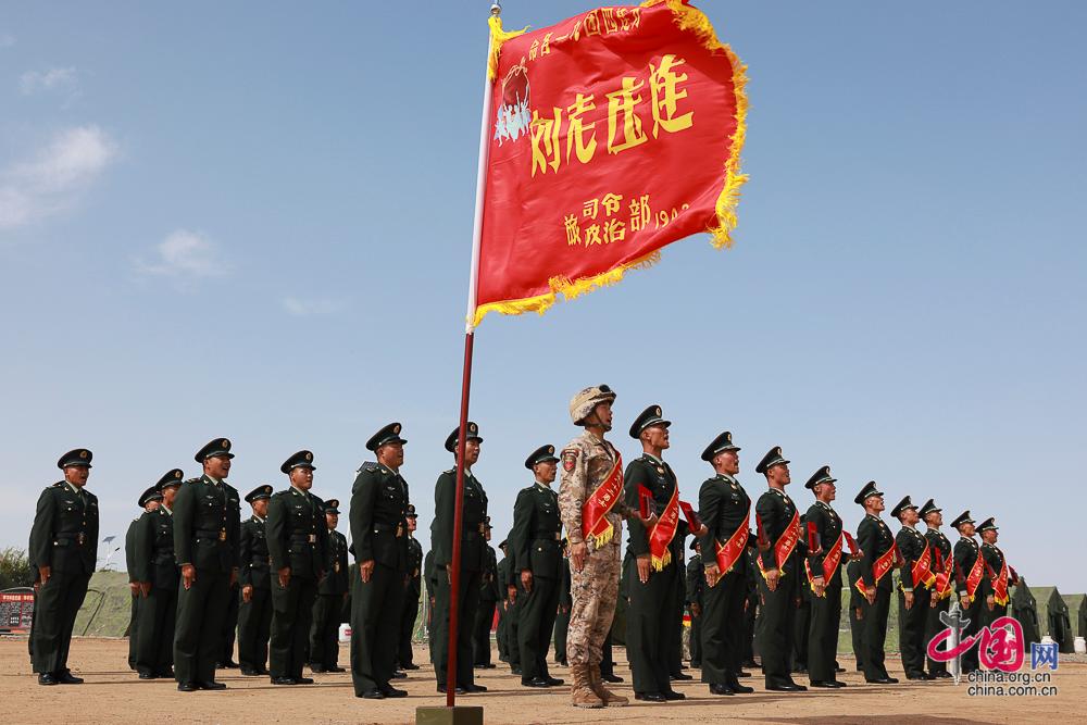 陆军第八十二集团军某旅“刘老庄连”“新时代刘老庄八十二勇士”颁授仪式现场。中国网记者 董宁 摄影9月15日,塞北某训练基地,在此驻训的陆军第八十二