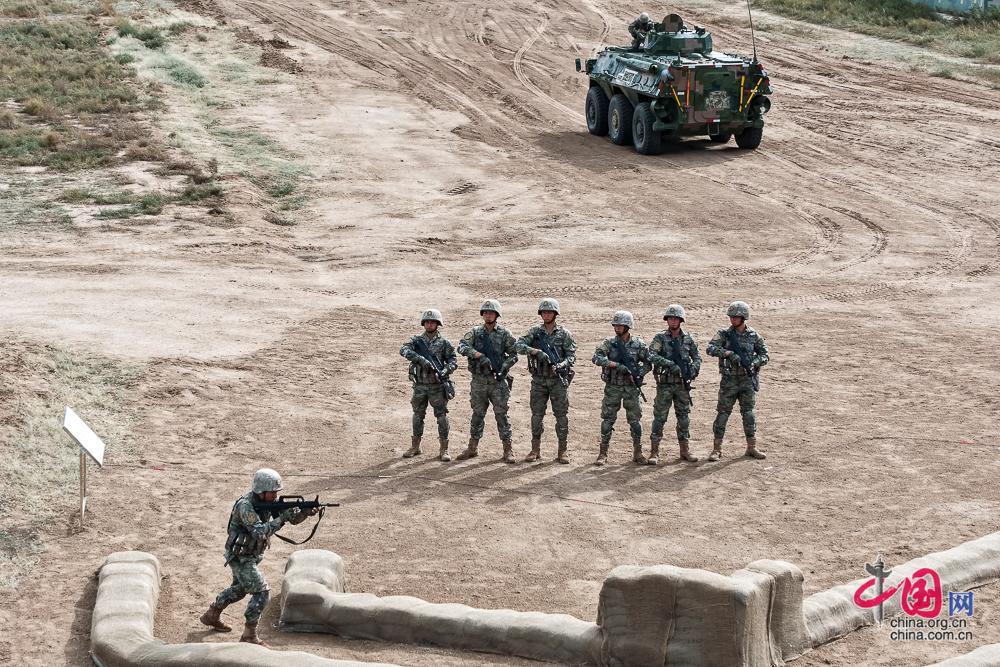 “刘老庄连”装甲步兵班课目演示现场。中国网记者 董宁 摄影